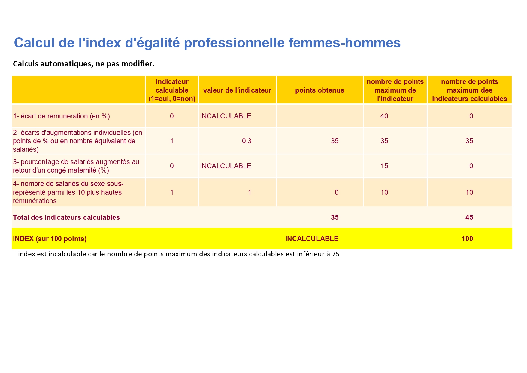 Résultat de l’index d’égalité professionnelle femmes/hommes